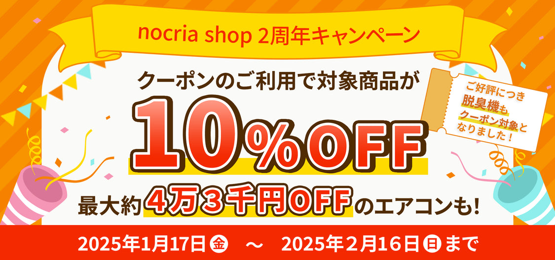 感謝の気持ちを込めて対象商品がお得にご購入いただける「nocria shop 2周年ありがとうキャンペーン」を開催いたします。